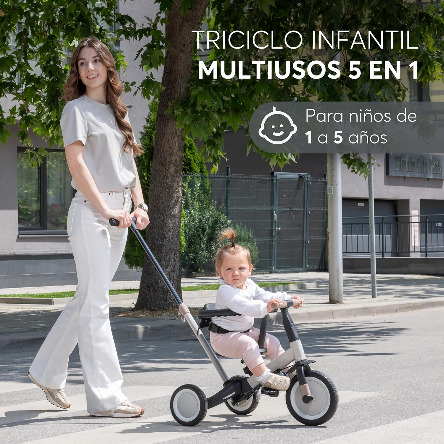 Regálale a tu hijo aventuras inolvidables con el triciclo FLIP 5en1, diseñado para crecer con él desde que tenfa 1 año hasta los 5 años. Este triciclo versátil se transforma a través de cinco modos distintos, lo que garantiza que se adapta a las etapas de desarrollo de tu hijo y te acompañará durante su crecimiento. El triciclo FLIP cuenta con un diseño robusto elaborado con acero resistente con alto contenido de carbono, que ofrece estabilidad y durabilidad para años de uso. Cuenta con una estructura adaptable con cinco modos: Modo de empuje, Triciclo, Triciclo sin pedales, Bicicleta de equilibrio y Bicicleta. Su capacidad de ajuste es clave para el diseño de FLIP, con un manillar delantero y la altura del asiento ajustables para adaptarse al crecimiento de tu hijo. El manillar trasero se ajusta en 3 posiciones y permite a los padres mantener el control a medida que tu hijo gana confianza. La seguridad de tu hijo se prioriza y garantiza con un sistema de arnés de 2 puntos, una rueda delantera de goma y ruedas traseras de poliuretano para un paseo suave y estable en diversas superficies. El triciclo FLIP combina versatilidad, seguridad y comodidad en un diseño elegante, lo que lo convierte en el compañero perfecto para las primeras aventuras de tu hijo en bicicleta. Ya sea empujando, pedaleando, manteniendo el equilibrio o conduciendo, FLIP garantiza que cada etapa del viaje de tu hijo esté llena de experiencias agradables y seguras.
