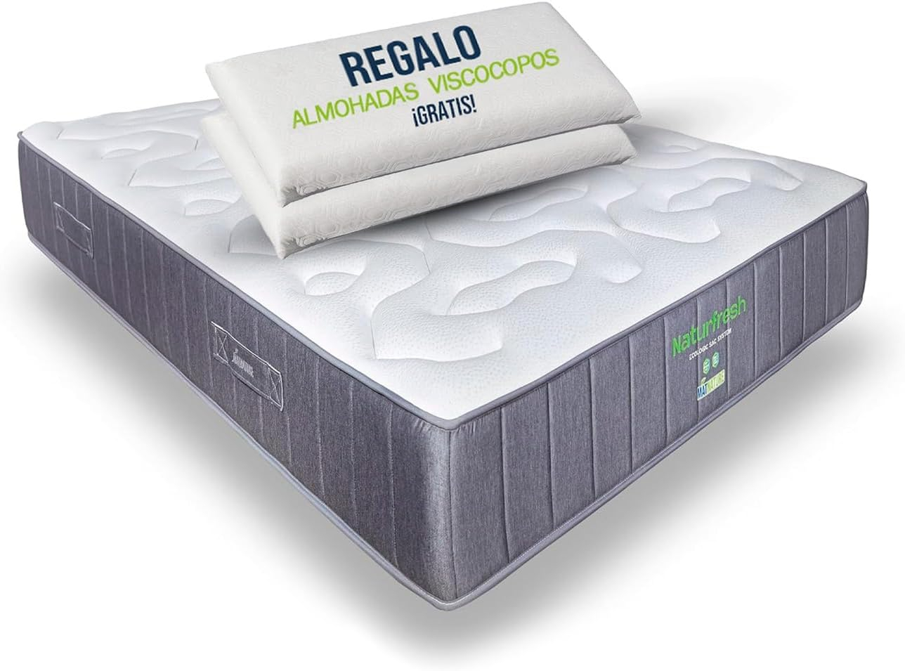 Matnature Naturfresh 150×200 – Colchón Viscoelástico con Muelles Ensacados | Altura 22 cm | Máximo Confort | Transpirable, Antiácaros, Ergonómico, Firmeza Media-Alta | Fabricado en España