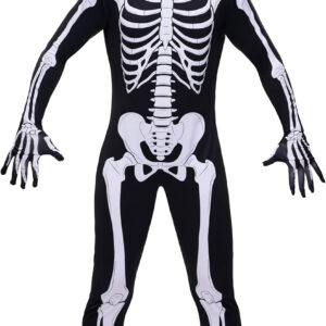 Get ready to be the center of attention with our human skeleton costume. This full-body costume includes a suit with impressive details and a skull hood that will make you stand out at any Halloween party or cosplay event.
