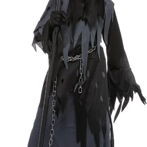 - Includes: Dress, cape, gloves, chain, mask, toy scythe, and light-up eyes.