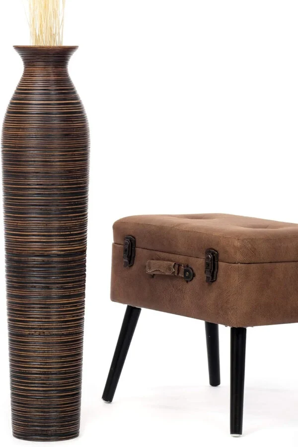 The Leewadee floor vase is a decorative piece that combines art and nature. Handcrafted from mango wood, each vase is unique and adds a touch of sophistication to any space. Its versatile design makes it ideal for modern, vintage, and rustic styles, allowing it to integrate perfectly into living rooms, offices, or special events.
