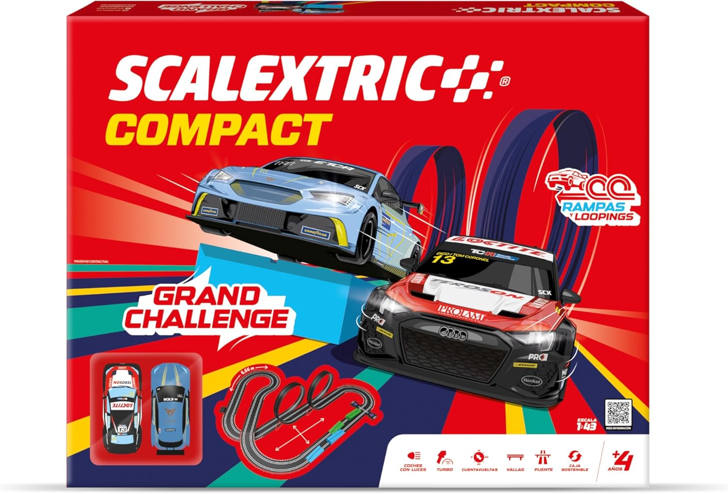 Grand Challenge a escala 1:42, un circuito emocionante para disfruta de la carrera con tu coche favorito con un diseño y acabado inigualable. ¡Adelanta a tu compañero y sé el primero en pasar por la meta! Pon a prueba tu experiencia de piloto y compite sin límites. Ayuda a desarrollar las habilidades psico-motrices, reflejos y capacidad de concentración de los niños. Es el juguete ideal para fomentar la interactividad entre padres e hijos, a la vez que estos últimos aprenden jugando.