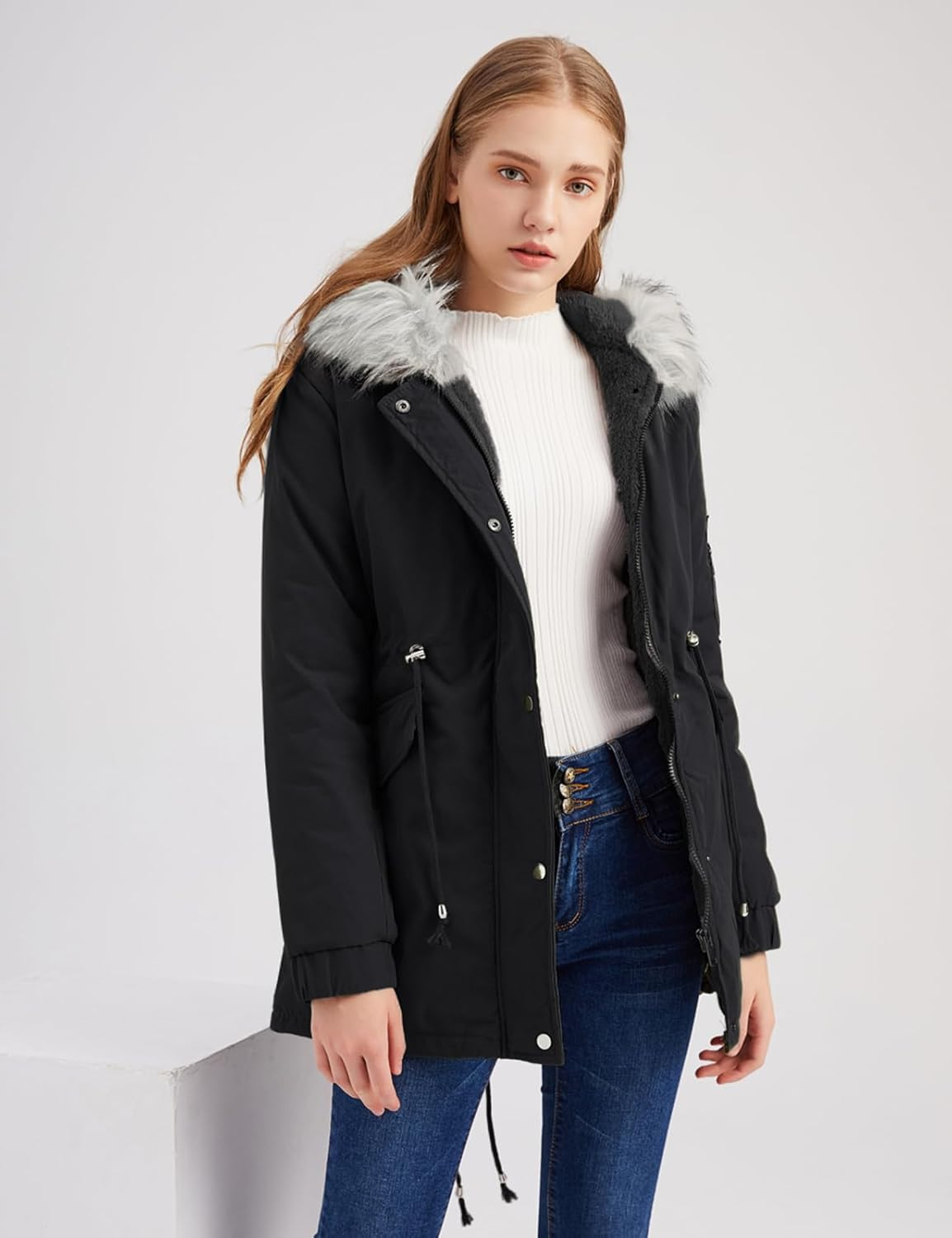 Tuopuda Abrigo Parka Mujer Largo con Capucha Abrigo Gruesa Chaqueta Cremallera de invierno cálidoa Prueba de Viento (copia)