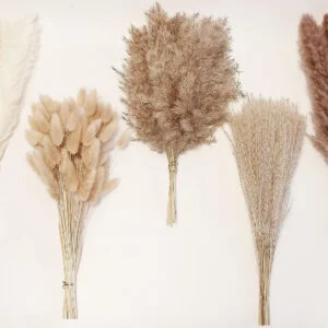 Hemos seleccionado cuidadosamente un número suficiente de 110 piezas de pampas grass, incluyendo 5 pampas esponjosas, 50 piezas de flores secas de cola de conejo blancas, 25 piezas de hierba seca, 15 piezas de pampas grass blancas y 15 piezas de pampas grass en colores naturales.