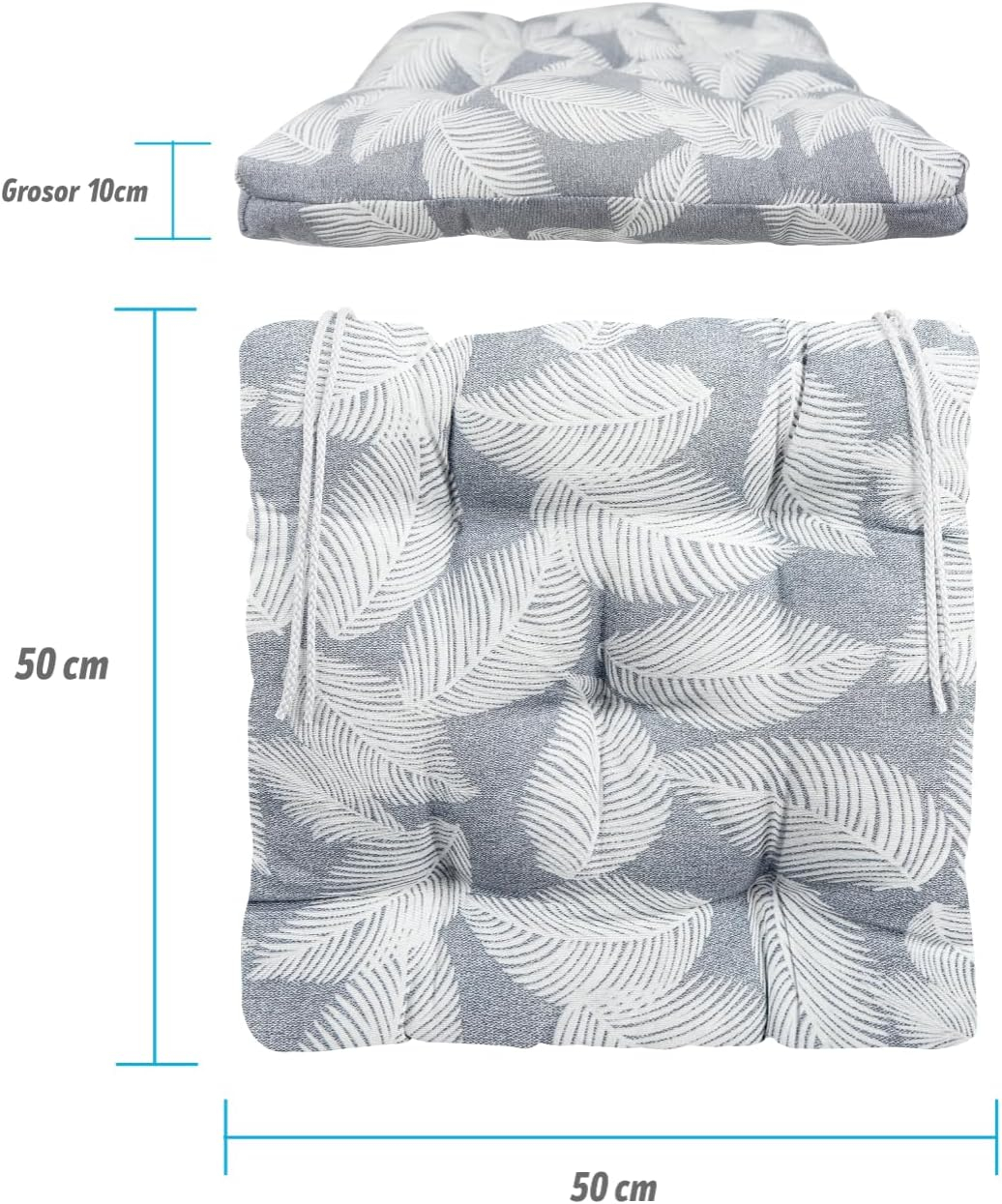 El pack de cojines CHELY INTERMARKET incluye 4 unidades de 50×50 cm en un elegante diseño Pluma Gris. Cada cojín está diseñado con 5 pespuntes de fijación que distribuyen uniformemente el relleno mullido de fibra hueca siliconada, proporcionando una experiencia de asiento más cómoda y estable. Perfectos para aportar un extra de confort tanto en sillas de interior como de exterior, son ideales para el comedor, la cocina, la terraza o el jardín.