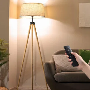 Die Lampe kommt in einem relativ kompakten Paket und muß zusammengebaut werden – der Zusammenbau dauert ca. 5 bis 10 Minuten, das geht schnell und einfach. Was mich überrascht hat, ist die hochwertige Qualität der Beine – die lassen sich absolut sauber ineinander verschrauben, da steht nichts über, da gibt es keine Kante – die Beine sehen so aus, als wenn sie aus einem langen Holzstück gefräßt worden sind. Auch die Halterung aus massivem Metall und Lampenfassung sind sehr gut verarbeitet. Der Kunststoff-Lampenschirm ist mit Stoff bezogen und wirkt auch nicht billig und macht schönes Licht. Soweit zum Ständer. Das Leuchtmittel ist eine LED E27 Birne, die eingeschraubt wird und per Fernbedienung die Lichttemperatur (kalt, neutral und warm), sowie die Helligkeit eingestellt werden kann. Auf der Fernbedienung gibt es Preset Knöpfe, die einmal Nachtlicht (niedrigste Helligkeit und warm), sowie volle Ausleuchtung und andere Modi (mittlere Helligkeit neutral, kalt und warm). Die Stufen können aber alle noch individuell eingestellt werden und das tolle daran ist – die Einstellung bleibt gespeichert, auch wenn sie vom Strom getrennt wurde.Insgesamt ist das eine wirklich schöne und funktionelle Stehleuchte – hochwertig verarbeitet und macht gutes Licht für alle Situationen. Empfehlenswert und damit 5 Sterne!
