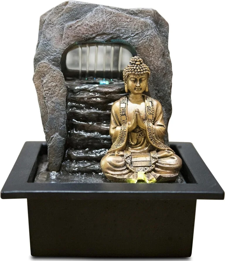 Decidí comprar la fuente Zen’Light para un regalo debido a las buenas reseñas y su precio.Entre los aspectos más destacables, resaltar el cambio cromático de las luces. Antes de comprarla me preocupaba que fuese demasiado llamativo para una fuente de Buda, pero es bastante más discreto de lo que pensaba.Su segundo punto fuerte es la cascada. El sonido del agua resulta muy relajante. Es cierto que se escucha un poco el motor, aunque apenas se aprecia.En cuanto a lo negativo, decir que la figura de Buda se cayó al suelo y se rompió en dos partes, de manera que hubo que pegarla. La calidad no es excesivamente buena, por lo que recomiendo tener cuidado a la hora de manipularla.Pese a ello, la fuente es muy bonita y funciona correctamente. Un regalo muy acertado para alguien que le guste este tipo de cosas.