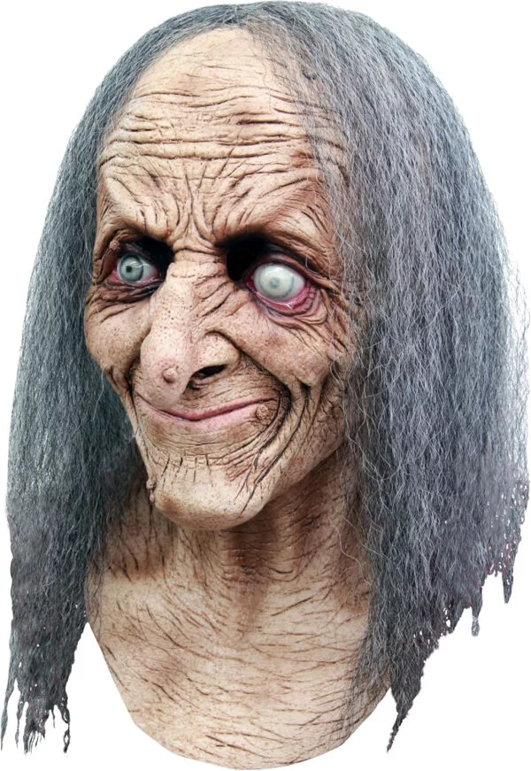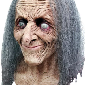 Hagatha is truly frightening, both to the wearer and to anyone looking at her. I found the fit to be very tight and claustrophobic. I had to slit part of her throat under her chin to get enough room for my throat. I couldn’t breathe and felt panicky. Her chin is designed to be very downward-pointed, thus, the throat is constricted upward. Once inside, I could see very little and had to feel my way around. All that said, Hagatha is well made, seems durable, has lifelike synthetic hair and ghastly eyes. Upon arrival, the inside of the mask was filthy and needed a good scrubbing, as was indicated in the directions. Hagatha is a good value for the price, and may fit smaller-headed people just fine. Have fun with her!