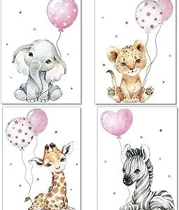 artpin Juego de 4 imágenes para habitación de niños, rosa decoración para niños y niñas, DIN A4, póster, diseño de an...