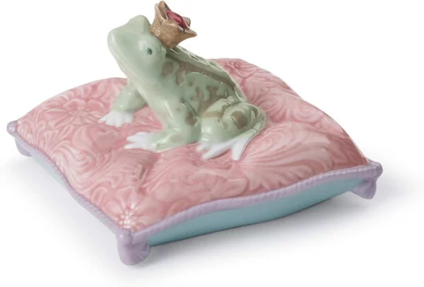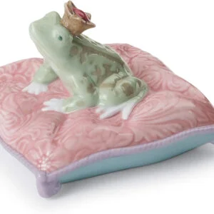 The colors are a little closer to nature than shown. The frog has a light touch of olive green about him, and a lifelike sideways tilt of the head that’s not too apparent from the angle of the photo. He really does seem like one inquisitive froggy prince. A charming piece for fairytale fans.