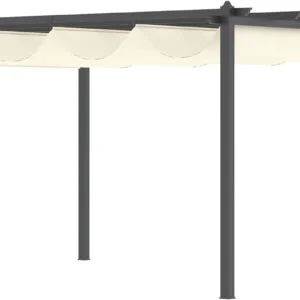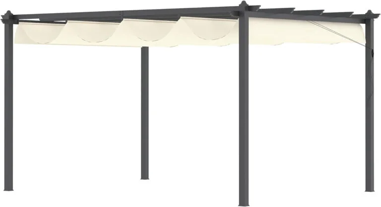 - TECHO RETRÁCTIL: Los rieles laterales y los 5 puntos de apoyo te permiten deslizar la cubierta de la pérgola y ajustarla con las cuerdas a la medida que quieras. Para mantenerla abierta, cerrada o a mitad según el espacio sombreado del que quieras disponer