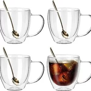 JNSMFC Tazas de café transparentes de vidrio vidrio aislados de paredes dobles, con mango, para capuchino, espresso, ...