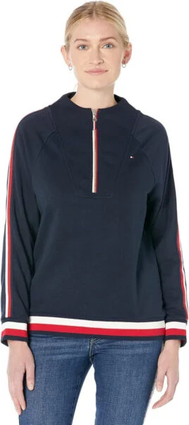 Tommy Hilfiger Combina comodidad y estilo con esta sudadera con cremallera y cuello embudo.