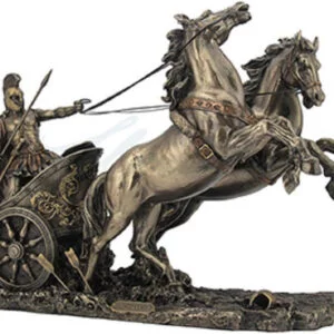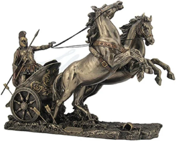Displays an incredible detail and quality. Bronze Achilles on a Two Horse Chariot Sculpture. This sculpture is a finely crafted, highly detailed work of art, sturdy and durable. I was very pleased with the quality of this amazing Greek statue. It was beyond my expectations. I really love it.