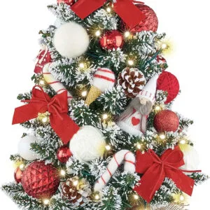 This is a very nice Christmas tree! The ornaments that come with it are cheaper, but after it is decorated, it looks really cute!It stands about 18″ tall and will be prefect for our kitchen island at Christmas time! Good purchase!!