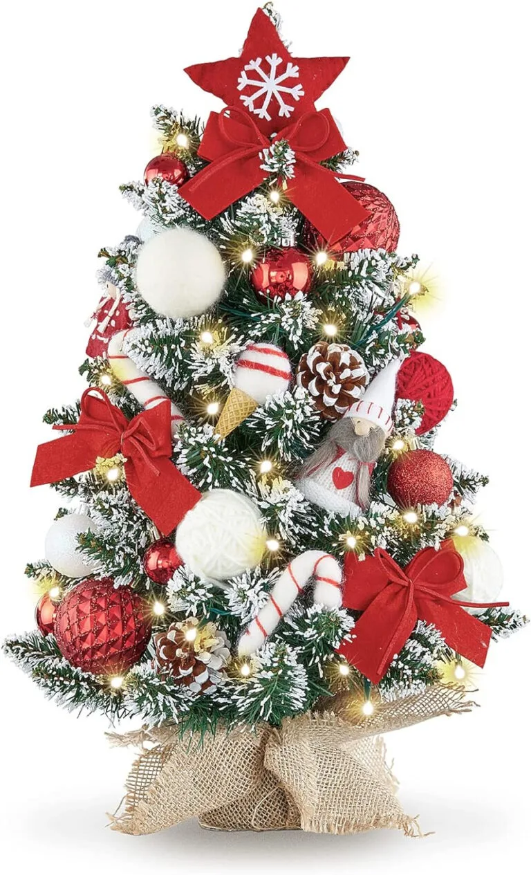 WBHome Mini árbol de Navidad de 1.8 pies, árbol de Navidad con luces, rojo y blanco