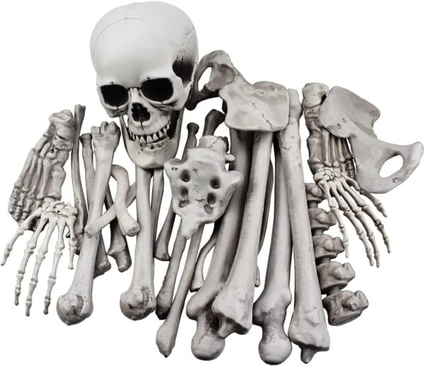 La bolsa incluye: 28 piezas de huesos de plástico duraderos: calavera y huesos de 15 cm que miden de 13 cm a 41 cm surtidos.