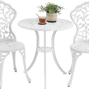 Yaheetech Conjunto de 1 Mesa y 2 Sillas Exterior de Jardín Muebles de Aluminio para Jardín Balcón Terraza Juego de Muebles de 3 Piezas Blanco