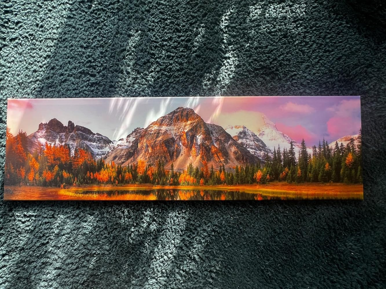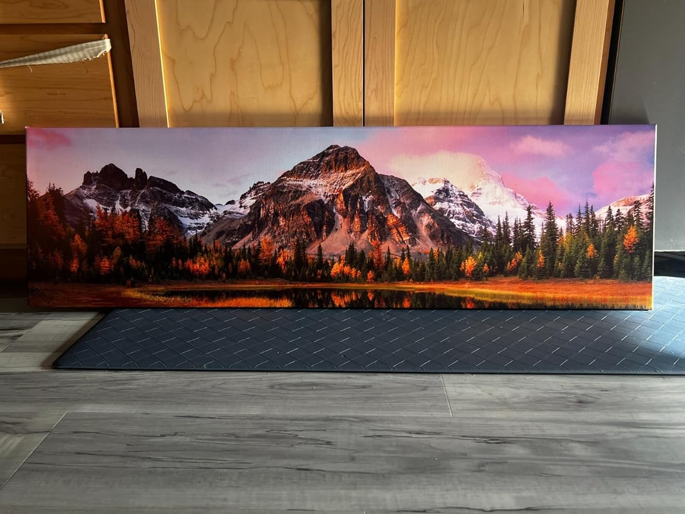 This review is for Mountain Canvas Wall Art at Sunset. What a beautiful picture! I absolutely love mountain shots especially if there is a sunrise or sunset behind them. This wall art is a large 14” x 48” x 1” and the canvas and print is stretched over the wooden frame for a finished look. The photo itself is high gloss and the color is as vivid as stated. I have a couple of walls that it might go on, and it’s also waterproof and UV resistant just incase it’s hung on a wall where the sun hits. I like and recommend this wall art, it’s beautiful, it came with hooks for hanging, and it can be easily dusted or cleaned with a wet cloth.